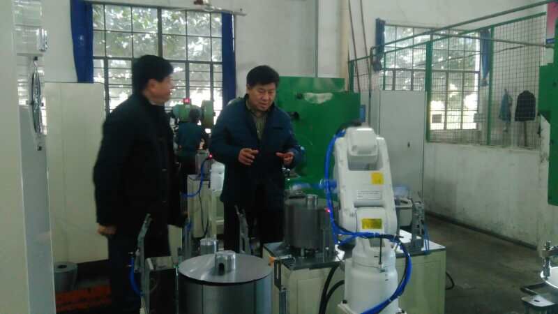 走出會議室,孫總和胡部長陪同符會長一行參觀公司生產車間,走到機加車間,符會長一下子就被“機器人操作完成錐形電機定子沖槽工作”工位所吸引,孫總講,這個工位以前都是人工操作,勞動強度很大,現(xiàn)在正在全力推進工位機器人操作,不久將會全部用機器人替代。