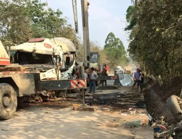 一輛混凝土車撞上一名騎摩托車的男子,摩托車被壓扁粉碎,駕駛員頭部被壓,當(dāng)場不幸身亡。混凝土車散架報廢,司機受輕傷。