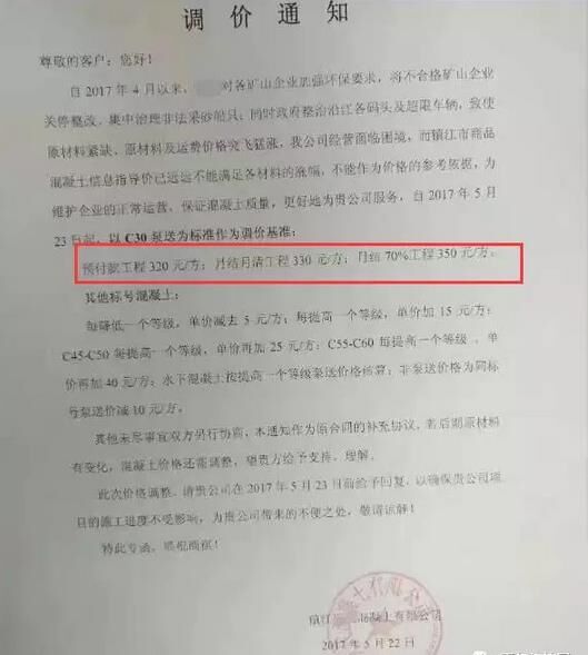 各建筑、施工單位——自2017年3月以來水泥連續(xù)調(diào)價,黃沙、石子等原材料大幅上漲,并供應(yīng)緊張,混凝土行業(yè)各企業(yè)已無法正常運行,砼行業(yè)資金十分緊張,隨時有停產(chǎn)危險……