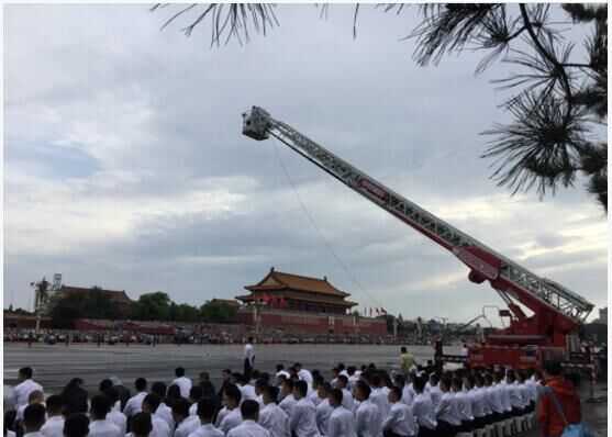 大閱兵直播鏡頭中在高空俯拍閱兵隊(duì)伍意氣奮發(fā)的行進(jìn)畫面,是由名為“天鷹”攝像系統(tǒng)拍攝的?!疤禚棥毕到y(tǒng)的定位支撐采用中聯(lián)重科兩臺(tái)ZTC大型汽車起重機(jī),架起高度為30米由南向北的300米拍攝索道,通過(guò)攝像設(shè)備在索道間來(lái)回穿梭拍攝,將下方的壯觀景象一覽無(wú)余。