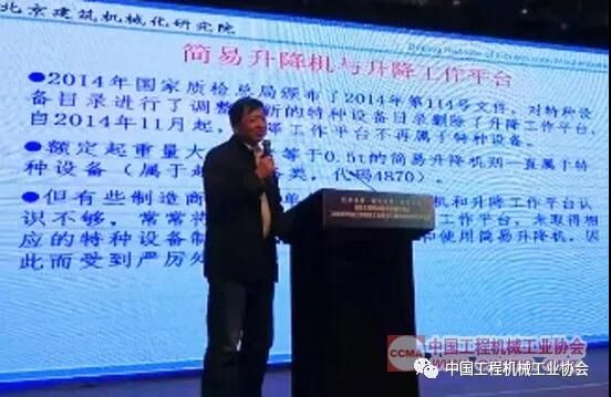 分會會長田廣范作《簡易升降機與升降工作平臺區(qū)別》報告