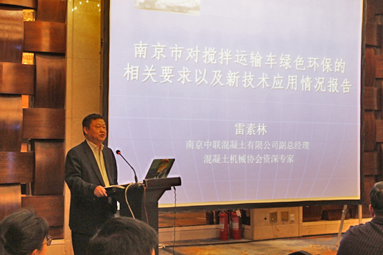 南京中聯(lián)混凝土有限公司副總經(jīng)理、混凝土機(jī)械協(xié)會(huì)資深專家雷素林先生作了《南京市對(duì)攪拌運(yùn)輸車綠色環(huán)保的相關(guān)要求以及新技術(shù)應(yīng)用情況報(bào)告》的主題演講,從南京環(huán)保和攪拌車治理過程中所遇到的問題提出了攪拌車在綠色環(huán)保和新技術(shù)應(yīng)用方面的以下幾點(diǎn)建議: