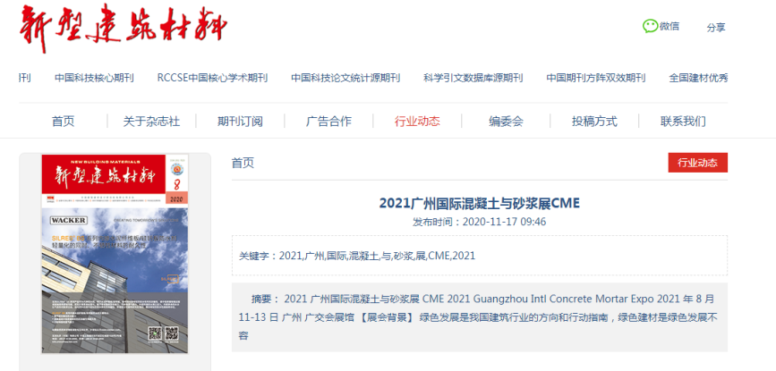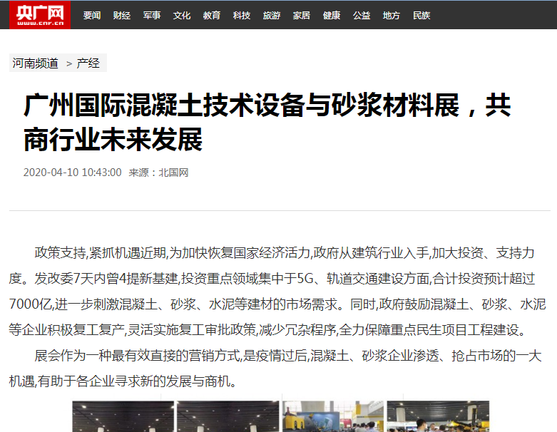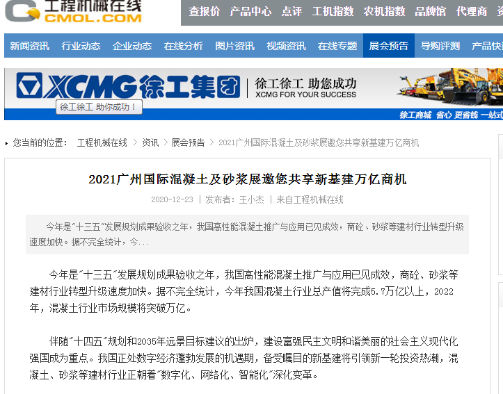 在此,小編就不一一列舉了,再次衷心感謝各大媒體對2021廣州國際混凝土及砂漿展的大力宣傳,為各地的混凝土、砂漿產(chǎn)品、設備代理商、經(jīng)銷商、承包商、進出口貿(mào)易商等業(yè)內(nèi)人士等提供全面了解展會的平臺!