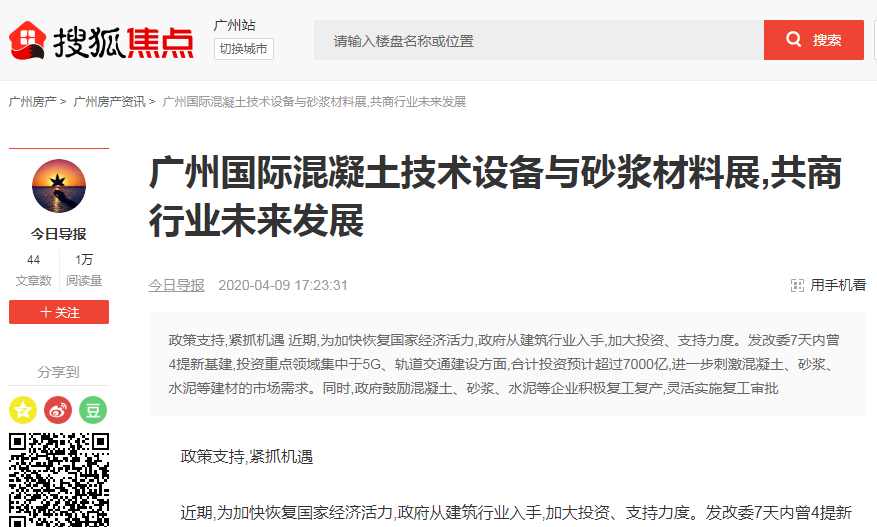 廣州國際混凝土及砂漿展已于2020年成功舉辦,自項目立項以來,得到多方媒體的關注和報道。據(jù)統(tǒng)計,2020-2021年度,騰訊視頻、愛奇藝、土豆網(wǎng)、優(yōu)酷視頻等電視媒體,網(wǎng)易房產(chǎn)、新浪家居、廣州搜狐焦點、騰訊網(wǎng)、中國數(shù)字經(jīng)濟網(wǎng)、央廣網(wǎng)、360慧聰網(wǎng)、南方網(wǎng)、北方網(wǎng)、羊城晚報、廣州日報、新浪網(wǎng)、新京報、21世紀經(jīng)濟報道、東方網(wǎng)、光明網(wǎng)、中國商業(yè)新聞網(wǎng)、焦點中國網(wǎng)等主流媒體,抖音、快手、西瓜視頻、今日頭條、百家號、火山小視頻等視頻媒體和廣東建設報、中國路面機械網(wǎng)、新型砂漿網(wǎng)、世界機械網(wǎng)、工程機械在線、攪拌設備網(wǎng)、中國保溫砂漿網(wǎng)等行業(yè)媒體,以及《混凝土雜志》、《砼時代》等雜志媒體均對展會給予高度關注,積極宣傳展會動態(tài)與資訊。感謝各行業(yè)媒體、主流媒體、視頻媒體、雜志的大力支持與高度認可。