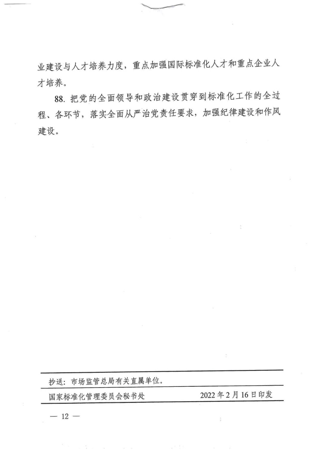 國家標準化管理委員會關(guān)于印發(fā)《2022年全國標準化工作要點》的通知