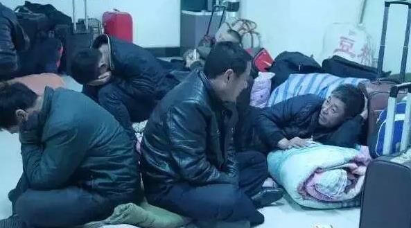 這些工人隨后被疏散至自治區(qū)政府旁邊的信訪辦,在信訪辦大廳靠近門口的位置,幾個(gè)工人歪歪斜斜靠在棉被和行李箱上睡覺(jué)。他們已經(jīng)連續(xù)討薪幾個(gè)月,已經(jīng)在信訪辦大廳住了二十多天,希望討回從2013年開始拖欠的工資。同樣的聚集地還有銀川市政府、永寧縣政府、洪廣鎮(zhèn)政府等。