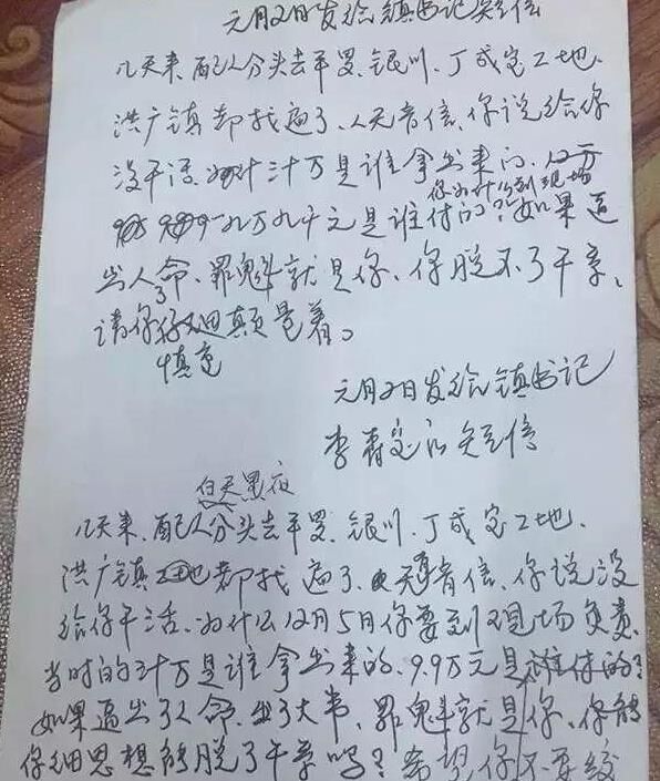 馬父請(qǐng)人代發(fā)鎮(zhèn)委書記短信的底稿