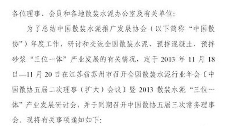 關(guān)于召開(kāi)全國(guó)散裝水泥行業(yè)年會(huì)暨2013散裝水泥“三位一體”產(chǎn)業(yè)發(fā)展研討會(huì)的通知