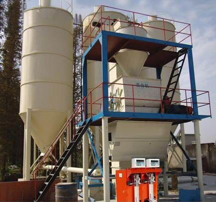 騰飛集團膩子粉生產(chǎn)設備年產(chǎn)兩到三萬噸左右的膩子粉生產(chǎn)設備,一般情況下會用到4-6個原料罐,其中兩個大罐用于裝放散裝水泥和粉煤灰,其余小罐用于裝放輕鈣、 重鈣、砂、小料等。散裝水泥和粉煤灰進罐不需要提升設備,依靠泵車打入。輕鈣、重鈣、砂、小料等需要使用斗式提升機提入小罐,巧妙的物料分配系統(tǒng)支持一個斗式提升機分配式作業(yè),從而避免了資源浪費。