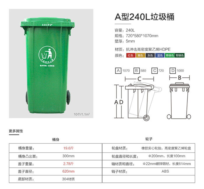 4.有多款顏色和規(guī)格選擇,可根據(jù)分類需求隨心搭配,加入防紫外線劑,能確保桶身顏色在戶外能保持鮮艷耐久。