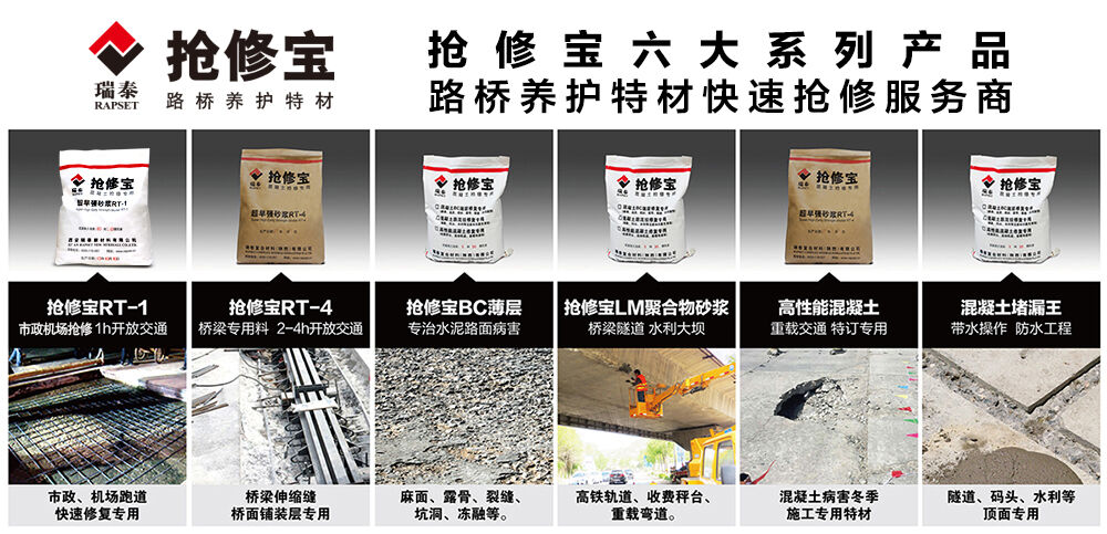常規(guī)的混凝土快速修補(bǔ)劑,是由無(wú)機(jī)與有機(jī)高分子材料組成的一種快速修補(bǔ)材料,具有快硬、早強(qiáng)、抗?jié)B、抗裂、耐磨、耐久等特點(diǎn),較之普通混凝土,混凝土快速修補(bǔ)劑修補(bǔ)的路面粘結(jié)更牢固,修補(bǔ)過(guò)后的水泥路面沒(méi)有出現(xiàn)破損、裂縫、脫皮等剝離現(xiàn)象,抗壓強(qiáng)度和抗折強(qiáng)度更高,是混凝土路面病害修復(fù)材料的上等材料。與常規(guī)混凝土快速修補(bǔ)劑不同的是,西安瑞泰公司生產(chǎn)的水泥混凝土路面快速修補(bǔ)料搶修寶自主研發(fā)了一種獨(dú)特的修補(bǔ)產(chǎn)品和技術(shù),使得混凝土快速修補(bǔ)具有高柔性、高抗拉性,施工后2-4小時(shí)就可通車(chē)。因而短時(shí)間受到大量認(rèn)可,在全國(guó)各地道路搶修實(shí)施中廣泛發(fā)揮重要作用。廣泛應(yīng)用于高速公路、機(jī)場(chǎng)跑道、國(guó)道、省道、縣鄉(xiāng)公路、橋隧、加油站、工廠、小區(qū)、停車(chē)場(chǎng)、廠房、水壩、水電站等水泥路面病害問(wèn)題的快速治理。