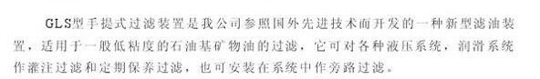 歸屬行業(yè):華宇 濾清器 GLS型手提式過濾裝