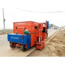 4.發(fā)動路緣石機,左前輪對準(zhǔn)墨線,均勻地將拌和料鏟入料斗,機械開始滑模施工工作;