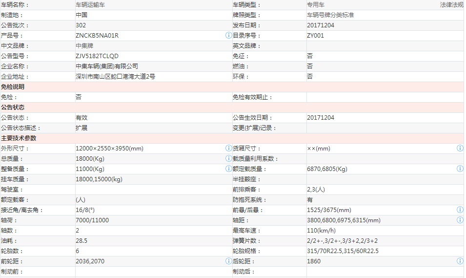 歸屬行業(yè):ZJV5182TCLQD中集車輛運(yùn)輸車