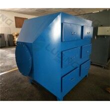 公司小風量的廢氣凈化塔由抽屜式組成,大量風吸附塔由上箱體、下支架、工作爬梯、平臺護欄和卸料裝置四部分組成。