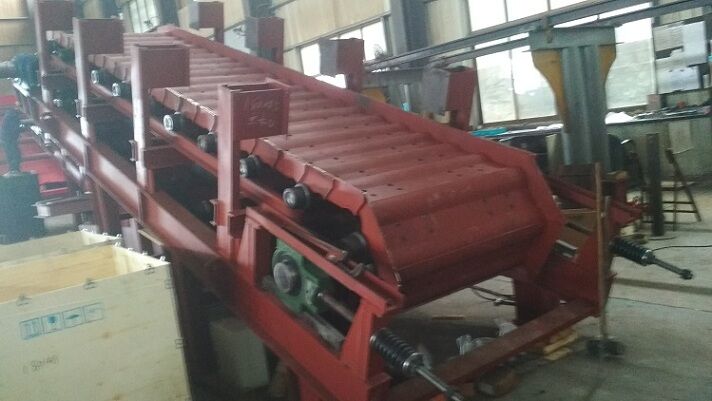 2、輸送槽板: 整個槽板圍成一個相對封閉的箱體,以保證上部來料能夠有效進(jìn)入板鏈上部,便于物料自開口處由刮板輸送至下一級輸送系統(tǒng),同時保證不使物料散落。