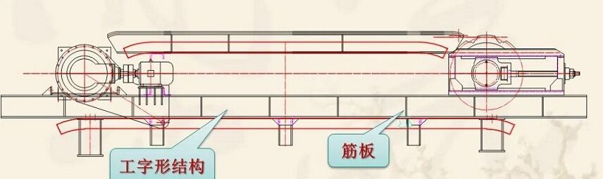 是由鋼板焊接而成的工字形結構,在上下翼緣板之間焊有若干筋板,兩個工字形主梁由若干槽鋼、工字鋼組焊為一整體,其結構堅固、穩(wěn)定。