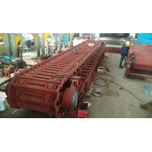 石料生產(chǎn)線日需石灰石6000t,需要臺時輸送產(chǎn)量800t,中控給定板式喂料機頻率35Hz,臺時產(chǎn)量僅為440---480t/h,離800t/h的設計產(chǎn)量差得很遠,破碎機每天需要運轉(zhuǎn)14h。為此,對板式喂料機系統(tǒng)進行了分析與改造。