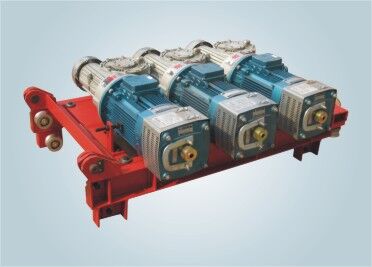 傳動(dòng)機(jī)構(gòu)由電動(dòng)機(jī)、電磁制動(dòng)器、彈性聯(lián)軸器、蝸輪蝸桿減速器及傳動(dòng)齒輪等組成。傳動(dòng)機(jī)構(gòu)在吊籠上通過(guò)齒輪與