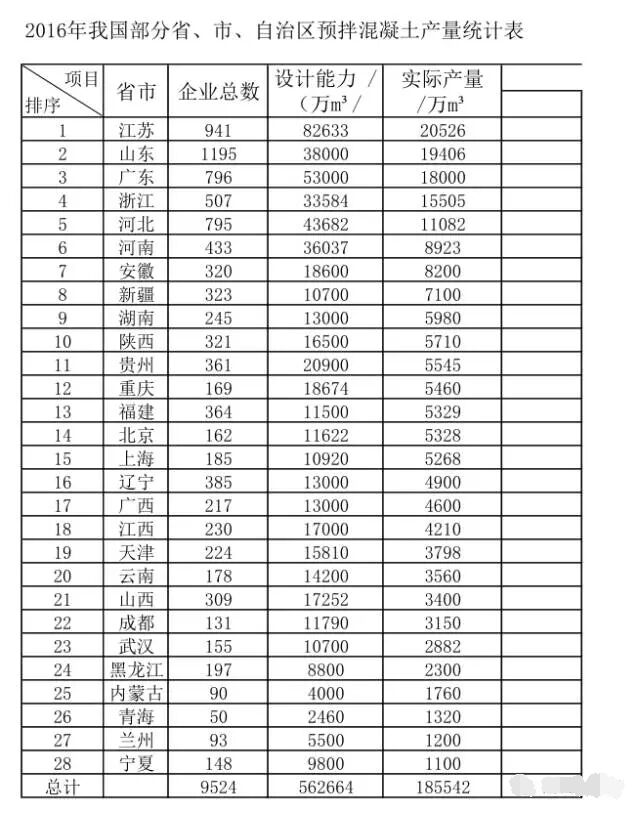 【數(shù)據(jù)】近三年各省混凝土實(shí)際產(chǎn)量,看看各位所在的省到底有多少
