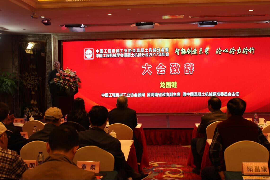 大會(huì)首先由中國工程機(jī)械工業(yè)協(xié)會(huì)顧問和原湖南省政協(xié)副主席、原中國混凝土機(jī)械標(biāo)準(zhǔn)委員會(huì)主任龍國鍵致辭,龍主席對會(huì)議提出的新思想、新概念給予了充分的肯定,特別是這次會(huì)議凝聚了行業(yè)及相關(guān)行業(yè)上下游的力量,真實(shí)起到了“砼心砼力砼行”的作用。最后祝愿2017年大會(huì)取得圓滿成功,混凝土機(jī)械行業(yè)再上一個(gè)新臺階。