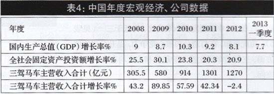 “狼來了”,還要“注意熊出沒”?這個問題,其實是上市公司決策者對當(dāng)漸口今后,宏觀經(jīng)濟和行業(yè)運御口何判斷的問題。2008年金融風(fēng)暴以來,世界經(jīng)濟未走出困境,國內(nèi)經(jīng)濟“穩(wěn)增長”任知艮巨,中國制造業(yè)采購經(jīng)理人指數(shù)(PMl)呈寬幅震蕩下行趨勢、2013年明更是超預(yù)期回落(見圖5),全社會固定資產(chǎn)投資總額增長自2009年以來增速放緩,作為周期性行業(yè)上市公司三駕馬車主營業(yè)務(wù)增長率與全社會固定資產(chǎn)投資增長率同步加速度回落?!袄莵砹恕?,還要“注意熊出沒”?三駕馬車年報對此看法分別是: