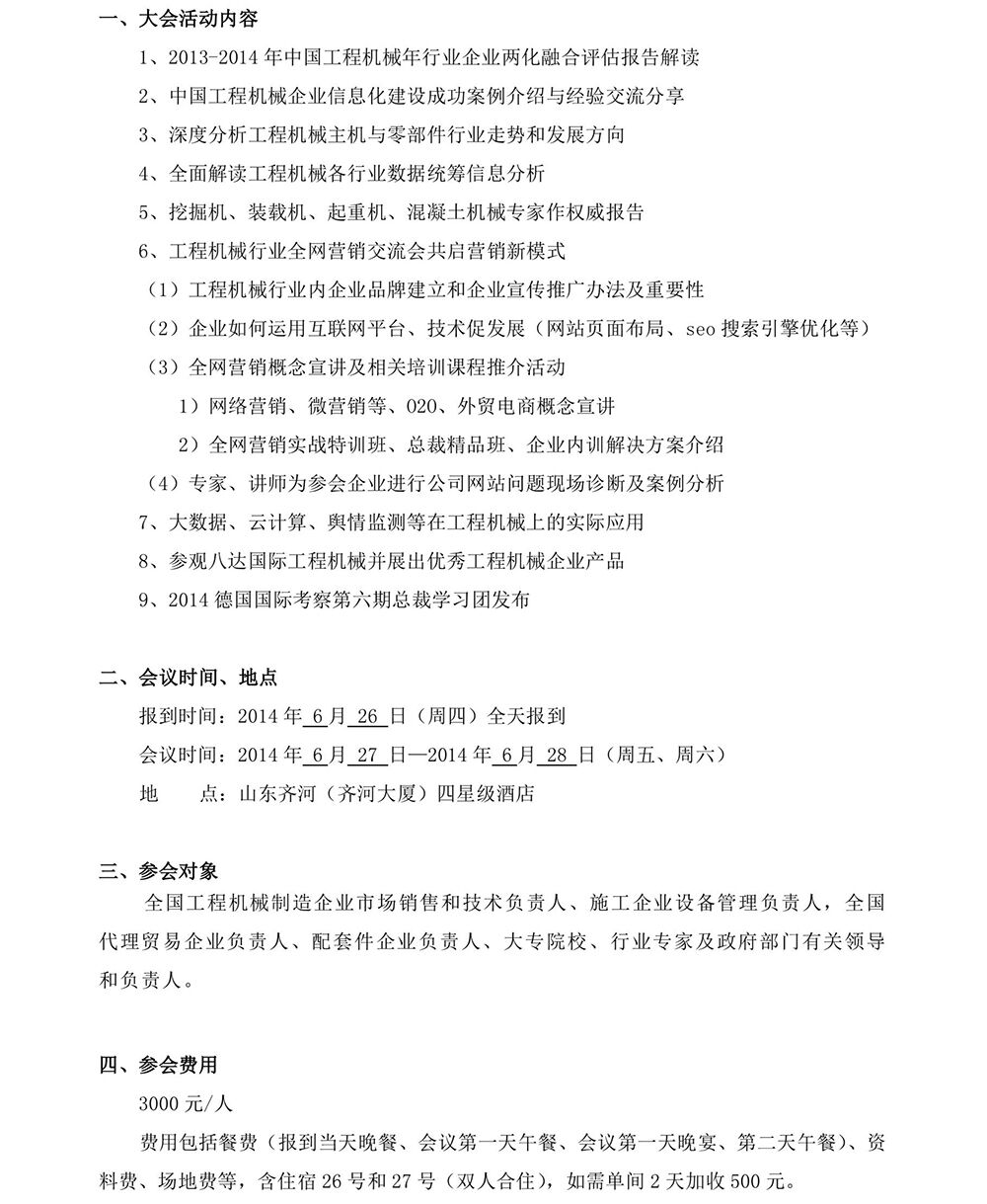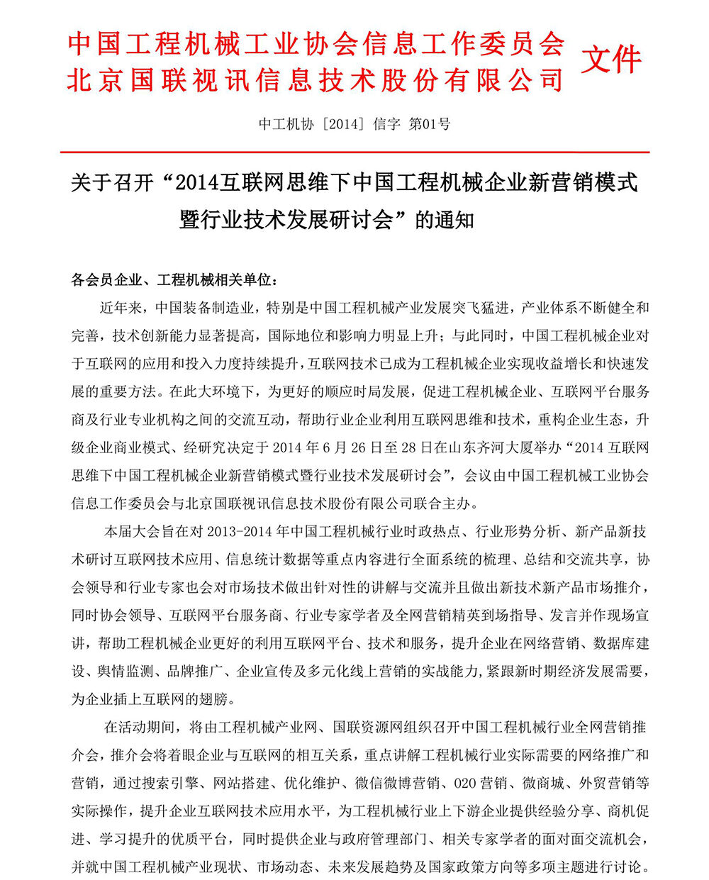 關(guān)于召開“2014互聯(lián)網(wǎng)思維下中國工程機(jī)械企業(yè)新營銷模式暨行業(yè)技術(shù)發(fā)展研討會(huì)”的通知